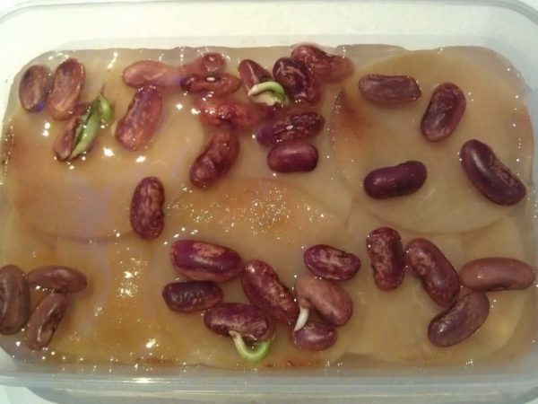많은 정원사들은 수확 속도를 높이기 위해 야외에 심기 전에 집에서 콩나물을 싹틔우는 것을 선호하지만, 콩나물은 식품으로 더 자주 사용되며 다양한 요리와 달콤한 페이스트리를 준비하는 데 사용할 수도 있습니다.
