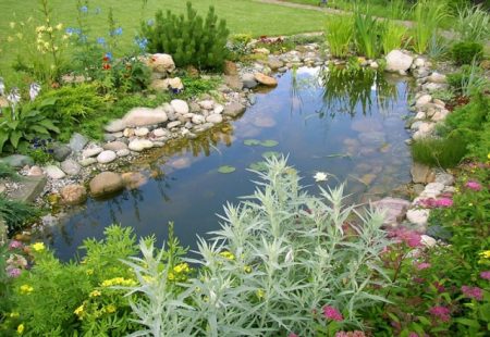 정원의 아주 작은 연못조차도 조경 설계에 중요한 기능적 요소입니다. 연못은 항상 공기에 수분을 공급하고 지역의 미기후를 변화시킵니다.