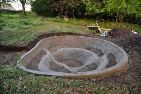 콘크리트 벽을 가진 연못은 가장 복잡하지만, 동시에 가장 내구성이 뛰어난 디자인입니다. 장인들은 콘크리트 벽을 가진 두 가지 버전의 연못을 개발했습니다.