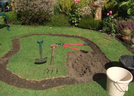 - 표시 도구. 여기에는 구덩이를 파야 할 구역의 윤곽을 표시하기 위한 줄자, 못, 끈이 포함됩니다.