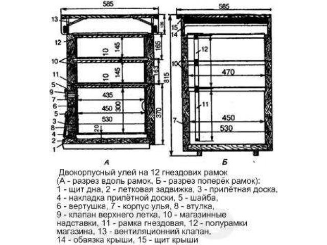 가볍고 손쉬운 설계 덕분에 벌통이 완전히 준비될 때까지 벌을 쉽게 운반하고 장기간 보관할 수 있습니다. Butlerov의 설계에 따른 벌집 상자 매개변수.