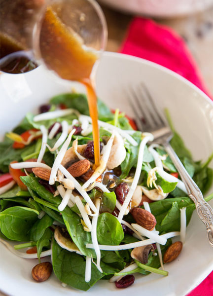 시금치 잎과 말린 크랜베리를 더한 이 프랑스식 샐러드는 다양한 맛이 조화롭게 어우러져 있습니다.