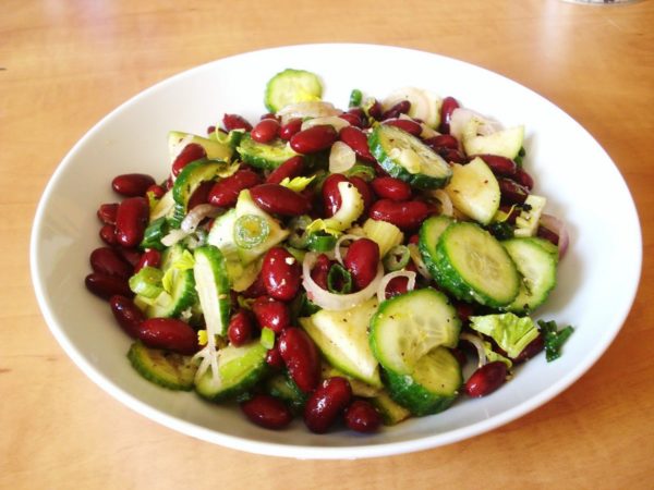 오이와 콩나물을 넣은 샐러드로 생식주의자들 사이에서 인기가 많습니다.