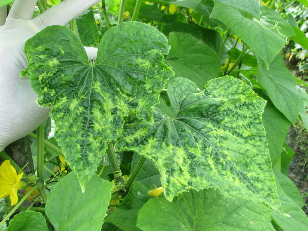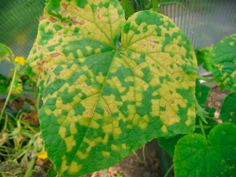 반점이 나타나면 흔한 병원균인 오이 모자이크 바이러스 감염을 나타낼 수 있습니다. 감염된 식물은 치료할 수 없습니다. 화단에서 꺼내 별도의 장소에서 태워야 합니다. 그 후 작물과 토양에 소독제를 처리해야 합니다. 바이러스는 잡초나 토양 속 식물 잔해를 통해 전파될 수 있습니다. 감염된 식물에 남아 있는 잔해를 모두 조심스럽게 제거하십시오.