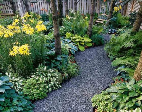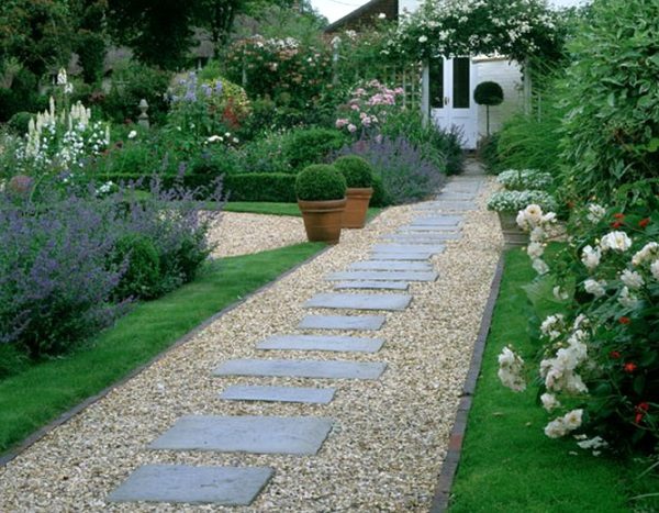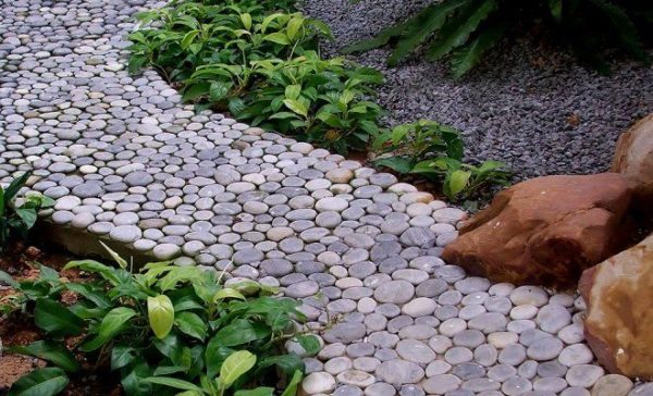 고가형 정원 길의 장점은 명확합니다. 손으로 쉽게 만들 수 있으며, 골재의 모양, 너비, 크기, 색상을 다양하게 조절할 수 있습니다. 기능적이고 장식적인 효과도 있으며, 신발을 먼지로부터 완벽하게 보호합니다. 빗물이 고이지 않고, 아래 토양층으로 빠르게 배수됩니다.
