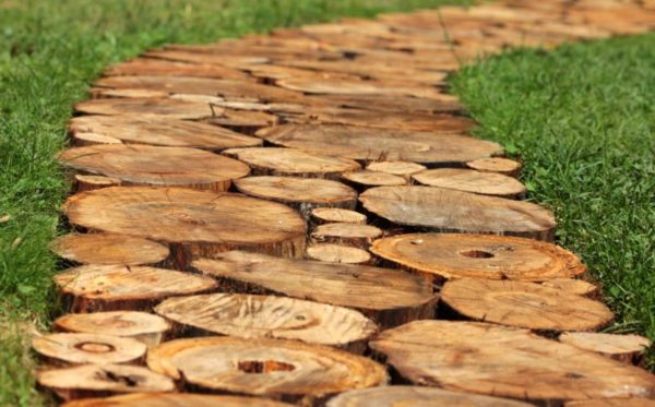 이러한 길은 정원의 화단이나 상자 화단 사이에 만들 수 있습니다. 경계에는 같은 통나무를 사용할 수 있지만, 잘라낸 높이는 두 배로 해야 합니다. 이러한 경계가 있는 정원 길은 매우 유기적으로 보입니다.