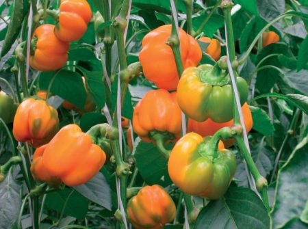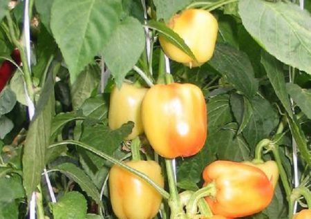 - '바그라티온'은 약간 주름진 잎을 가진 준표준형의 퍼지는 고추로, 정상적인 크기와 색상을 지닙니다. 완전 발아에서 기술적 성숙까지 걸리는 시간은 100일 남짓입니다. 열매는 수평으로 배열되어 납작하고 둥글며, 광택이 나고 촉감이 매끄럽고, 생물학적으로 익으면 노란색을 띱니다. 바그라티온 고추는 4개의 엽편을 가지고 있으며, 8mm 두께의 엽벽을 가지고 있으며, 무게는 약 200g입니다. 이 품종은 풍미가 좋습니다. 1제곱미터당 약 6kg의 고추가 생산됩니다. '바그라티온'의 주요 장점은 큰 열매, 매력적인 색깔, 육질, 그리고 풍미입니다.