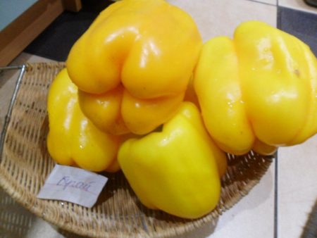이름에서 알 수 있듯이 이 품종은 큰 열매를 맺습니다. 야외와 온실 모두에서 재배할 수 있습니다. 이 식물은 넓게 퍼져 자라며, 각 덤불은 보통 약 60cm 높이에 이릅니다. 열매는 정육면체 모양이며 밝은 노란색 또는 녹색을 띱니다. 고추 한 개의 무게는 110~500g입니다. 이 품종은 가장 빨리 익는 품종 중 하나이며, 생장 기간은 60~90일입니다.