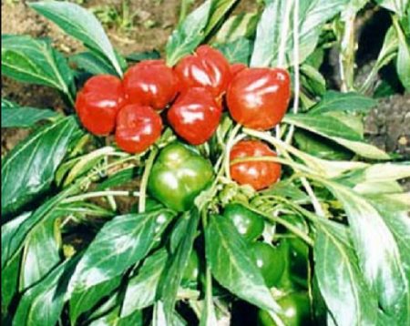 조기에 빨리 익는 단 품종으로 생장 기간은 75~90일입니다. 비닐하우스나 온실에서 재배하는 것이 좋습니다. 2월 셋째 주 10일경에 묘목용 씨앗을 파종하십시오. 수풀은 반쯤 퍼지며 1m 이상 높이까지 자랍니다. 한 그루에서 큰 열매 15개를 맺을 수 있습니다. 평균적으로 제곱미터당 최대 6kg의 수확량을 얻을 수 있습니다. 이 품종의 열매는 처져 있으며 맛이 매우 좋습니다. 고추 한 개의 무게는 약 50g이며, 껍질 두께는 4mm입니다. 덜 익은 열매는 연녹색이고, 익은 열매는 밝은 붉은색이며, 달콤하고 단단한 과육을 가지고 있습니다.