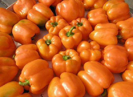 이 품종은 보호 토양에서만 재배할 수 있습니다. 오레니 F1 교배종은 키가 작은 관목 형태로 크고 정육면체 모양의 열매를 맺습니다. 고추는 기술적 발달 단계에서는 녹색을 띠고, 최고조에 달하면 밝은 주황색을 띱니다. 뛰어난 풍미와 풍부한 향을 자랑합니다. 이 품종은 겨울철 잼, 레초, 신선한 샐러드에 적합합니다. 두꺼운 껍질 덕분에 운반에도 잘 견딥니다.