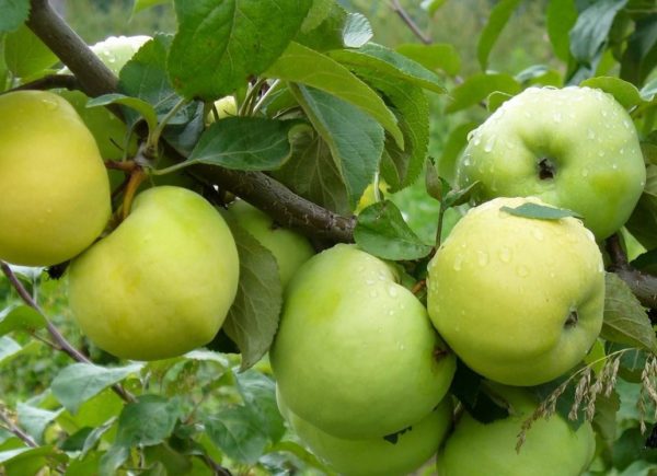 러시아 정원사들 사이에서 널리 알려진 이 나무는 평균적인 키인 5미터까지 자랍니다. 어린 나무의 넓은 피라미드형 꼭대기는 자라면서 둥글게 변합니다. 균등한 면의 흰색과 녹색 열매는 남쪽을 향한 면이 약간 붉은색을 띠는 것이 특징입니다. 과육은 거칠고 듬성듬성합니다. 나무가 자라면서 사과는 점점 작아집니다.