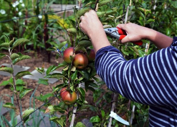 수확량을 극대화하기 위해 사과나무 가지치기를 실시하여 가장 튼튼하고 튼튼한 가지만 남깁니다. 형성 전정은 나무가 제대로 자랄 수 있도록 하는 데 사용됩니다. 이 전정은 식재 후 다음 해에 처음 실시하거나 묘목이 2년 이상 된 경우 묘목장에서 실시합니다. 매년 봄, 외부 기온이 안정적으로 영하 이상으로 유지될 때마다 이 과정을 반복합니다. 성숙한 묘목은 형성 전정과 위생 전정을 거칩니다. 위생 전정은 죽거나 병들었거나 손상된 새싹을 제거하는 데 필수적입니다.