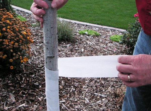 - 사과나무 줄기는 분필이나 백색 도료로 코팅합니다. 이 작업은 해충 피해를 방지하기 위해 필요하며, 심은 지 몇 주 후에 실시합니다.