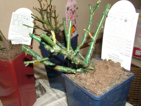 처리 후, 묘목을 종이로 싸서 산소가 잘 통하도록 구멍을 뚫은 봉지에 넣어야 합니다. 겨울 동안에는 심은 재료를 다시 점검하는 것이 중요합니다. 뿌리에 병든 부분이 나타나면 손상된 조직을 제거하고 선명한 녹색으로 다시 처리해야 합니다. 뿌리가 마르거나 물을 너무 많이 주면 안 됩니다.