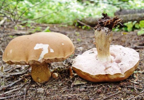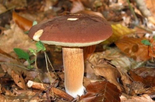 얼룩무늬 볼레투스 - 밤나무 볼레투스 – 특정 가공 조건 후 식용 가능합니다. 이 버섯은 볼록한 갈색 갓에 균열이 있는 것이 특징이며, 그 사이로 가볍고 촘촘한 살이 보입니다. 줄기는 원통형이며 밝은 회색입니다. 독특한 버섯 향이 납니다.