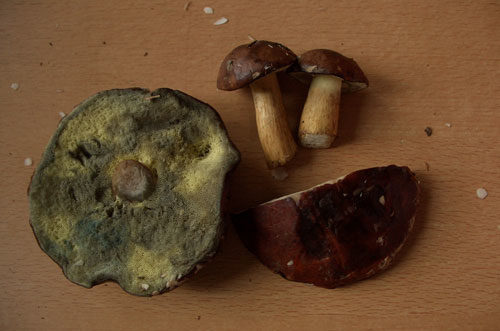 - 버섯을 자른 후에는 먹을 수 있는지 꼭 확인하세요. 과육을 눌러 보세요. 과육이 푸르스름하거나 청록색이어야 합니다. 시간이 지나면 과육이 원래 색으로 돌아올 것입니다.