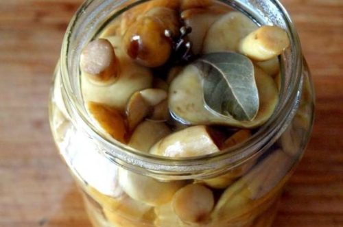 먼저 위에 나열된 재료를 사용하여 양념장을 준비합니다. 끓는 물에 소금, 설탕, 그리고 모든 향신료를 넣고 3~5분간 끓인 후 식초를 넣습니다. 미리 익힌 버섯을 양념장에 넣고 끓입니다. 그런 다음 버섯을 깨끗하고 살균된 병에 넣고 뚜껑을 닫습니다.