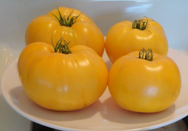 큰 토마토를 좋아하는 사람이라면 "골든 돔"이라는 기억에 남는 이름을 가진 토마토를 좋아할 것입니다. 이 품종은 최대 200~250kg까지 자라며, 때로는 그 이상까지 자랄 수도 있습니다. 남부 지역에서는 이 품종을 노지에 직접 심지만, 다른 지역에서는 온실 재배를 선호합니다. 이 품종은 키가 1.5m에 달하며 지지대가 필요합니다. 숙성 기간은 평균 110일입니다. 수확량은 평방미터당 최대 12~13kg으로 높습니다. 이 품종은 알려진 대부분의 곰팡이 및 바이러스성 질병에 대한 저항성을 보입니다. "골든 돔"의 장점은 다음과 같습니다.