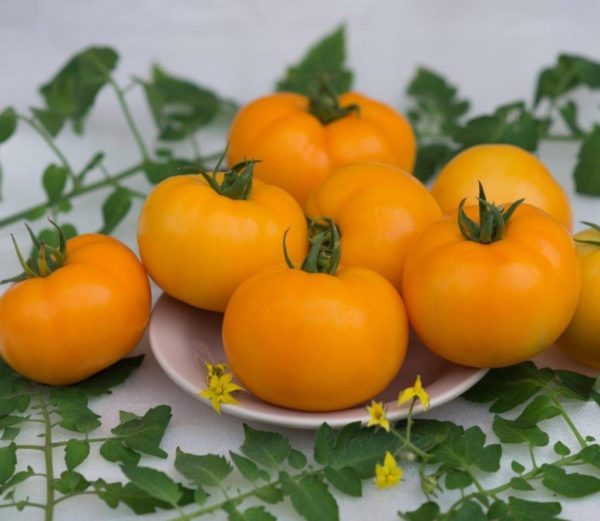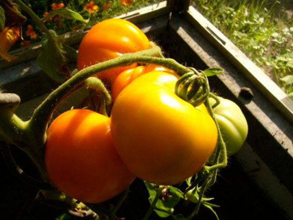 이 조기 숙성 교배종은 따뜻한 기후의 야외 재배에 적합하도록 설계되었지만, 다른 지역에서는 온실에서만 재배할 수 있습니다. 유한생장형 덤불은 빠르게 자라며, 발아 후 80~90일이면 수확할 수 있습니다. 토마토는 노란색이며 무게는 200~250g이고, 달콤하고 시큼하지 않은 맛을 지닙니다. 1제곱미터당 15~20kg의 엄선된 고품질 과실을 수확합니다. 수확된 토마토는 주로 생과로 소비되지만, 일부는 잼, 주스, 퓌레로 가공됩니다. 이 품종은 다음과 같은 장점을 제공합니다.
