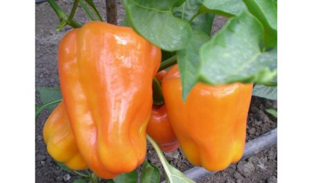 최고의 중생종 교배종입니다. 이 고추는 크고 두꺼운 껍질을 가지고 있으며, 생산성이 높고, 보기 드문 주황색을 띱니다. 덤불은 빽빽하고 단단하며, 높이는 70cm를 넘지 않습니다. 생장 초기에는 꼬투리와 잎의 색깔이 잎사귀와 동일하기 때문에 구별하기 어렵습니다. 잎은 작고 주름지며 빽빽합니다. 한 식물은 보통 12~14개의 후추열매를 맺으며, 각 열매의 무게는 250g입니다. 열매에는 충분한 양의 씨앗이 들어 있는 최대 4개의 씨앗실이 있습니다. 과육의 두께는 0.8cm입니다. 묘목은 비닐 덮개 아래나 노지에서 재배합니다.