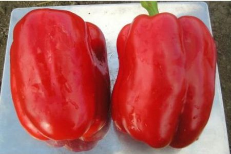 수확량이 높은 또 다른 초기 교배종입니다. 일반적으로 줄기가 반쯤 퍼지는 강건한 덤불을 형성하며, 높이는 최대 70cm까지 자랍니다. 잎은 짙은 녹색이며 약간 주름져 있습니다. 열매 하나의 무게는 180g이고, 껍질 두께는 0.7cm입니다. 완전히 익으면 진한 빨간색으로 변합니다. 고추는 장기간 운송에도 잘 견디며, 특수 목재 용기에 담아 장기간 보관할 수 있습니다.