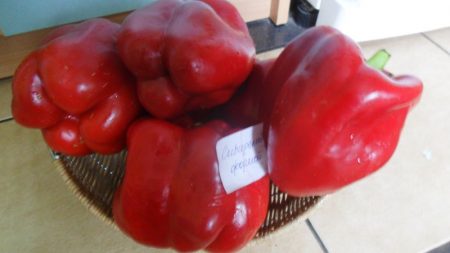 고추는 달콤하고 즙이 많으며 쓴맛이 전혀 없습니다. 무게는 200~230g까지 자라지만, 전문 업체들은 350g이 넘는 대형 고추를 자랑합니다. 시기적절하고 적절한 관리를 통해 1제곱미터에서 평균 7kg의 고추를 수확할 수 있습니다.