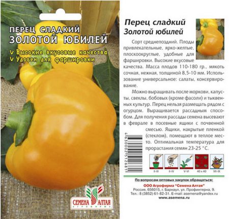 고추는 조생종입니다. 발아 후 116일째부터 익기 시작합니다. 묘목은 노지, 창턱, 그리고 온실에서 재배합니다. 덤불은 작고, 한정된 수형을 가지고 있으며, 잎이 거의 없습니다. 다 자란 아관목은 키가 30cm를 넘지 않습니다. 꽃은 풍성하고 무성합니다. 열매는 둥글며, 밑부분이 뚜렷하게 납작합니다. 익은 고추의 평균 무게는 100~175g입니다. 껍질은 치밀하고 다육하며 매끄럽고 불규칙한 부분이 없습니다. 두께는 0.8cm입니다. 생장기에는 열매가 녹색을 띠고, 완전히 익으면 황금빛을 띱니다. 꼬투리는 즙이 많고 달콤합니다. 고추 한 개에는 약 4.5%의 당분과 8%의 건조 물질이 함유되어 있습니다. 열매는 생으로 먹거나 통조림으로 통째로 먹습니다.