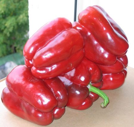 덤불은 곧게 서고 중간 크기이며 덩치가 커서 최대 12개의 열매를 맺습니다. 고추는 각기둥 모양에 약간 길쭉한 붉은색이며 무게는 200~250g입니다. 과육은 1cm보다 약간 두껍고, 과육은 즙이 많고 달콤하며 매우 맛있습니다. 수확한 작물은 저장성이 좋아 1제곱미터당 최대 4kg까지 수확할 수 있습니다.