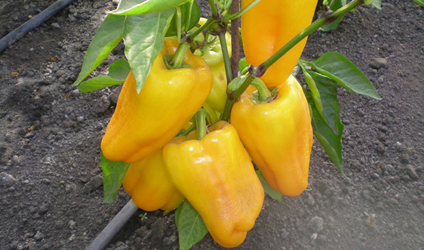 인기 있는 조기 숙성 교배종입니다. 고추는 기술적으로 성숙하면 진한 노란색을 띠며, 무게는 220g에 달합니다. 생산성이 높고 풍미가 뛰어납니다. 감염병에 강하며, 덤불당 수확량은 3~5kg입니다.