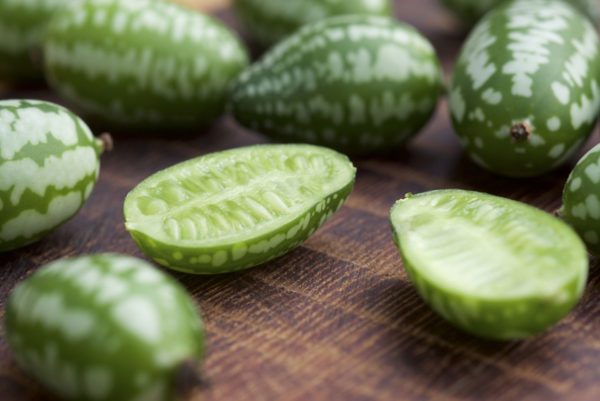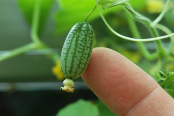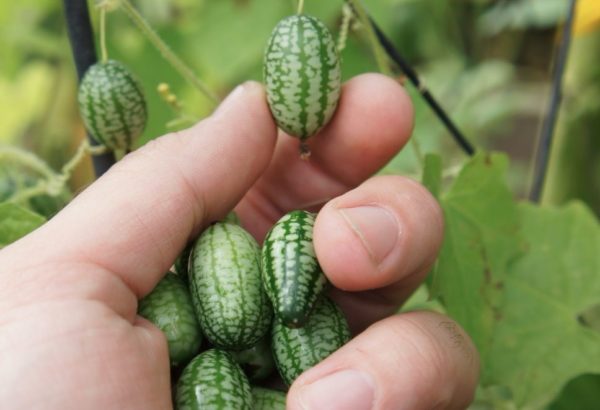 30일 된 식물을 심은 후 2~3주 후에 열매가 맺히기 시작합니다. 열매는 길이 1.5~3cm의 올리브 모양에 미니 수박 색깔을 띤 오이입니다. 이 과일의 비공식적인 이름으로는 아프리카 오이와 멕시코 오이가 있습니다. 과육은 일반 오이와 비슷합니다. 하지만 껍질의 신맛 때문에 케일 맛이 납니다. 과숙 및 과숙 채소의 맛은 현저히 떨어집니다. 미니 수박은 약간 덜 익었을 때 수확해야 하며, 부드러워질 때까지 수확하면 안 됩니다.