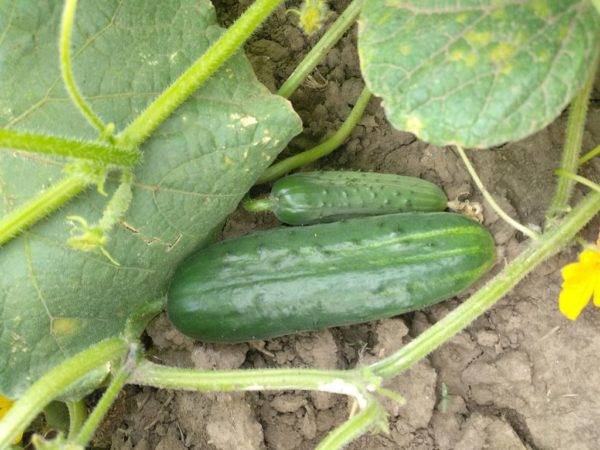 이 품종의 열매는 최대 16cm까지 자랄 수 있으며, 무게는 150~190g입니다. 2~3일에 한 번씩 수확하는 것이 좋습니다. 오이는 자르면 길쭉하고 삼각형 모양입니다. 짙은 녹색에 세로로 흰 줄무늬가 있으며, 표면에는 흰 가시가 있는 혹이 덮여 있습니다. 껍질은 두껍고, 물을 충분히 주지 않으면 쓴맛이 날 수 있습니다. 맛은 평균 이상으로 평가되며, 크기가 커서 샐러드용으로 적합하지만, 많은 사람들이 통조림으로도 사용합니다.