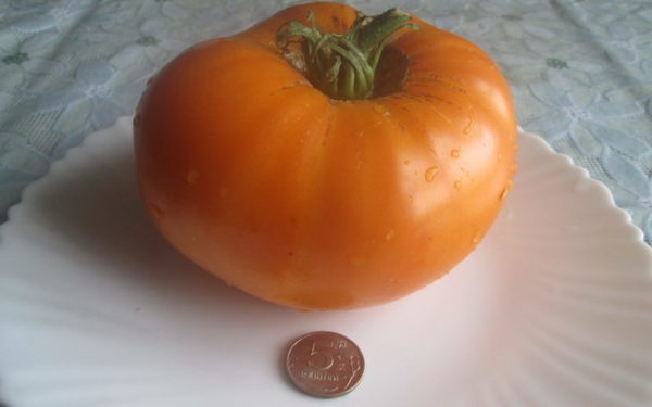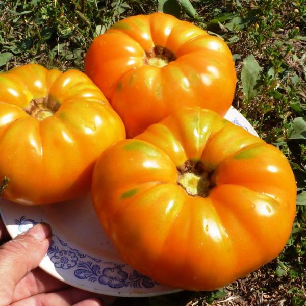 열매는 밝은 주황색이며 무게는 최대 700g까지 나갑니다. 이는 적당한 무게이며, 열매가 작다고 여겨지지 않습니다. 과육은 즙이 많고, 새콤달콤한 맛을 좋아하는 사람들에게는 딱 맞는 맛입니다. 바로 이것이 KVH 토마토 품종의 맛입니다.