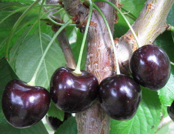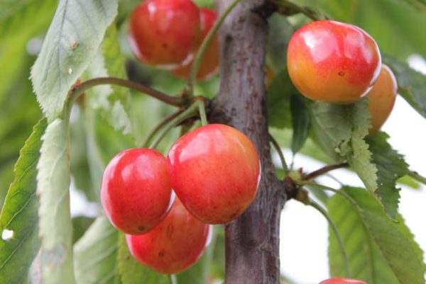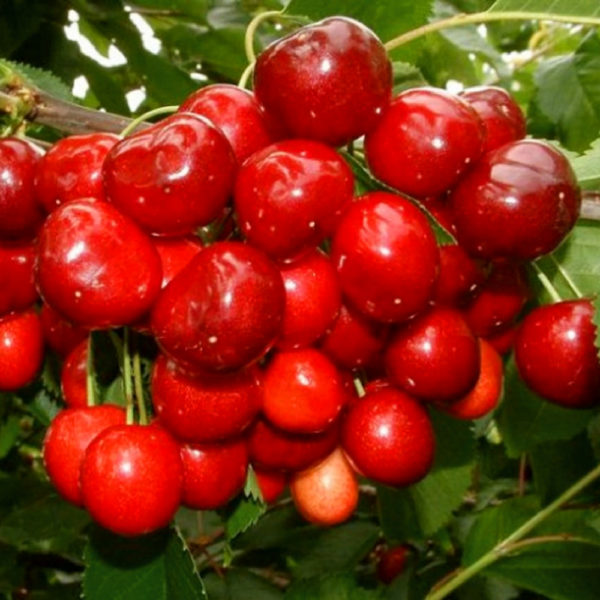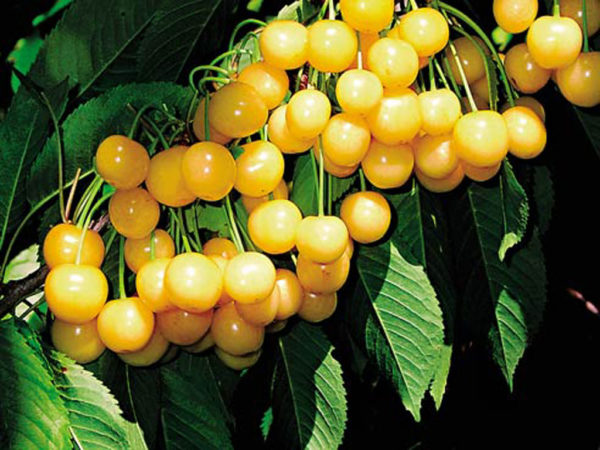 달콤하고 분홍빛을 띤 이 열매는 습한 환경에서도 갈라지지 않고 한여름에 익습니다. 한 그루에서 최대 30kg의 체리가 수확됩니다.