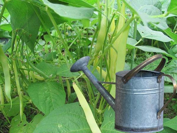 콩에는 따뜻하고 고인 물을 줍니다. 용기에 물을 채워 햇볕에 두면 따뜻해집니다. 저녁에는 물뿌리개로 모종의 뿌리에 물을 주거나 줄 사이에 뿌려줍니다. 양동이로 물을 주거나 잎에 물이 튀지 않도록 주의하세요.