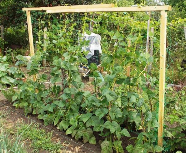 콩과식물 지지대는 튼튼해야 하며 줄기 무게에 부러지지 않아야 합니다. 고정대의 길이는 콩 품종에 따라 다릅니다. 최대 1m 높이의 교배종과 4m 이상 길이의 덩굴성 품종이 있습니다. 철사, 로프 또는 망사를 사용할 수 있습니다. 1.5~2m 높이의 기둥을 설치합니다. 식물이 나무 격자 울타리나 정자를 타고 올라갈 경우, 구조물 자체가 지지대 역할을 합니다. 정자의 지지대가 충분하지 않으면 고정대를 추가로 설치합니다.