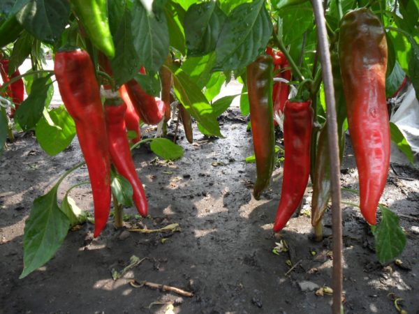 이 종의 강건한 식물은 적당히 넓게 퍼지는 것이 특징입니다. 수풀은 높이 90cm까지 자랍니다. 각 수풀에는 윤기 나는 붉은색을 띤 길쭉한 원뿔 모양의 열매가 달려 있습니다. 미성숙 고추는 생물학적으로 성숙할 때까지 녹색을 유지하며, 생물학적 성숙은 아름다운 짙은 색조를 띱니다. 평균 길이는 22cm를 거의 넘지 않으며, 열매의 무게는 중간 정도로 개당 150g입니다.