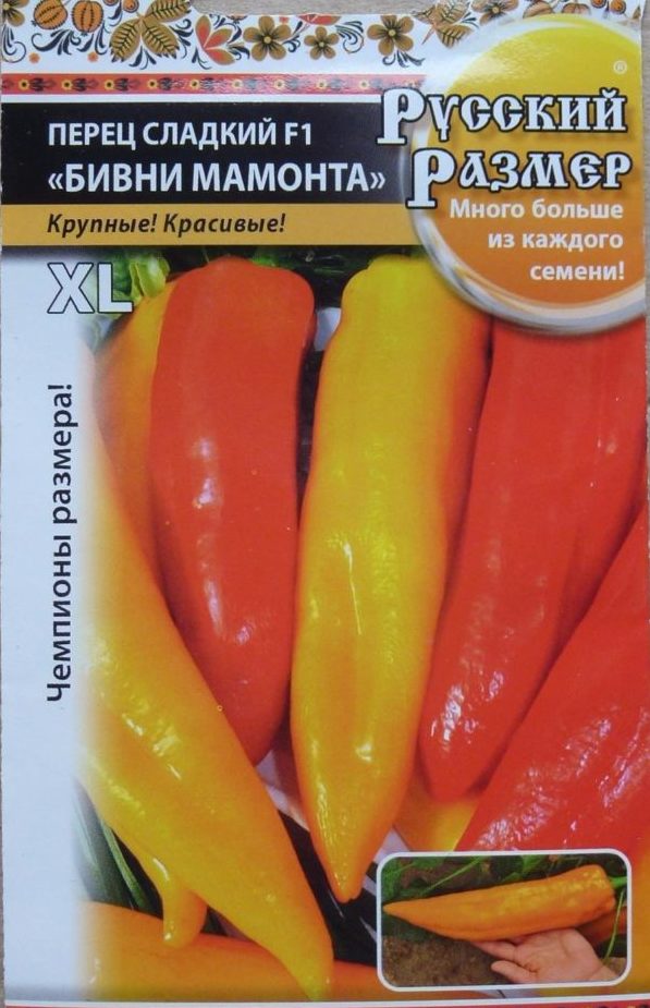 숙련된 재배자들에게 큰 열매 크기로 깊은 인상을 주는 잡종 식물입니다. 높이 1미터에 달하는 덤불에는 12개의 큰 고추가 달려 있습니다. 각 고추는 길이 28cm, 무게 250~300g입니다. 녹색에서 아름다운 노란색으로 변하다가 빨간색으로 변합니다. 고추는 단맛이 강하고 과육은 부드러우면서도 육질이 풍부합니다. 매머드 상아는 안전하게 통조림으로 만들 수 있지만, 슬라이스 품종을 선택하는 것이 가장 좋습니다. 훌륭한 샐러드 품종으로, 애피타이저로도 적합합니다.