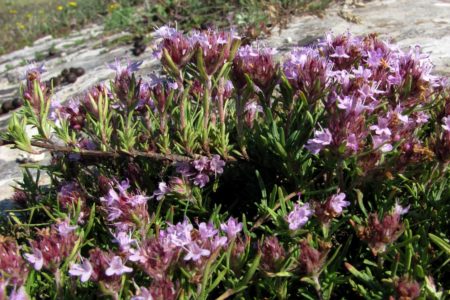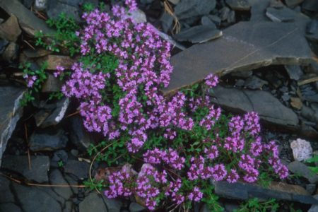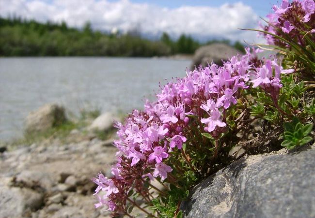 수많은 보라색 꽃을 피우는 타임은 콜라 반도와 스칸디나비아에서 자랍니다. 아북극성 식물로, 낮은 온도와 낮은 일조량에 대한 내성이 특징입니다.