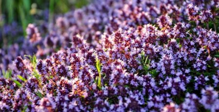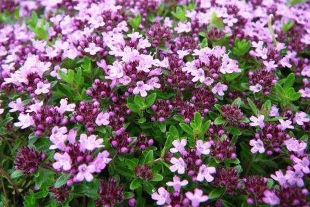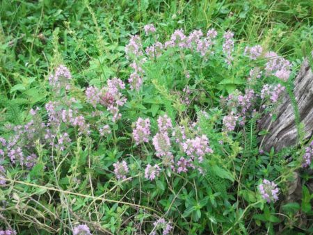 야생 타임은 키가 작고 관리가 쉬운 식물로 숲 가장자리에서 자랍니다. 높이는 18~20cm에 달하며, 작고 자주색 꽃이 핍니다. 한여름에 절정에 달합니다.