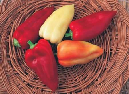 바그라티온은 약 100일 정도면 익기 때문에 모스크바 지역에 적합합니다. 열매는 각기둥 모양이며 (완전히 익었을 때) 아름다운 노란색을 띱니다. 무게는 최대 200g이며, 과피 지름은 8mm입니다. 이 고추는 통조림, 슬라이스, 샐러드용으로 적합합니다.