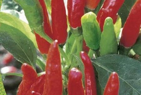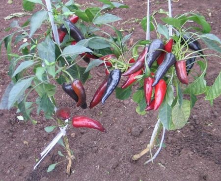 - "파이어리 볼케이노"는 지지대가 필요한 키가 큰 식물입니다. 열매는 좁은 삼각형 모양으로 길이 10cm에 달하며, 두께는 1~1.5mm입니다. 무게는 15~20g입니다. 열매는 불타는 듯한 붉은색을 띠며, 파프리카, 핫소스, 건과일을 만드는 데 사용됩니다.