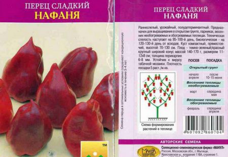 열매는 끝이 뾰족한 원뿔 모양이며, 짙은 붉은색이고 때로는 뚜렷한 자줏빛을 띱니다. 육질이 풍부하고 맛있는 고추 한 개의 무게는 180g을 넘지 않습니다. 열매 맺는 기간이 길어 m²당 15kg의 수확량을 보입니다. 나파냐 품종은 야외 또는 보호 토양에 심을 수 있습니다.