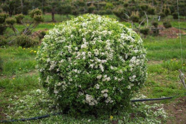 개화기는 5월에 시작하지만, 드물게는 여름 초입에 시작되기도 합니다. 꽃차례는 전년도에 자란 새순에 형성되어 새순 전체에 퍼져 나갑니다. 이 식물은 새순이 많이 나는 경향이 있어 일부 가지를 반드시 잘라내야 합니다. 가을에는 모든 새순의 최소 4분의 1(뿌리까지)을 제거해야 합니다.
