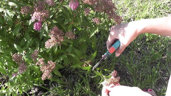 - 어린 줄기의 경우, 목질 부분이 아닌 끝부분을 제거하고 마른 꽃차례를 다듬습니다.