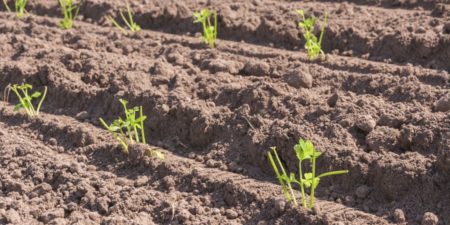 - 각 구멍에 묘목을 하나씩 심어 새싹이 줄을 향하도록 합니다.