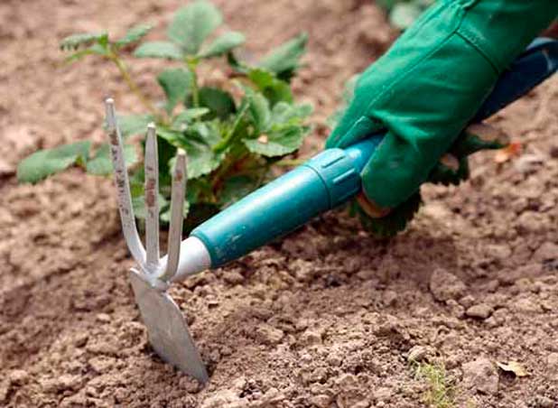 러너와 원치 않는 잎을 제거한 후, 모아서 태웁니다. 모든 잡초를 뽑습니다. 덤불을 언덕 위로 올립니다. 뿌리가 손상되지 않도록 매우 조심스럽게 작업해야 합니다. 작업 며칠 전에 화단에 물을 충분히 줍니다.