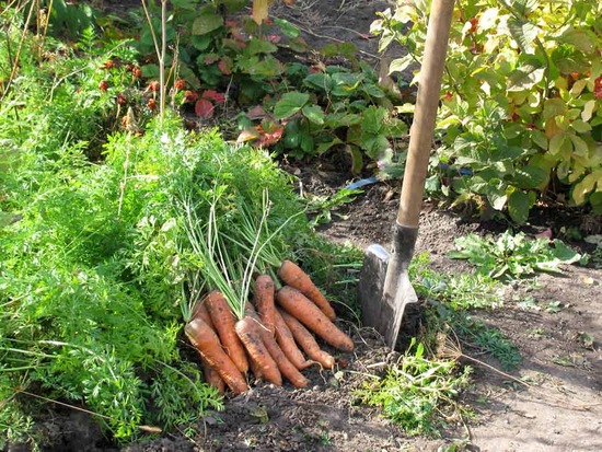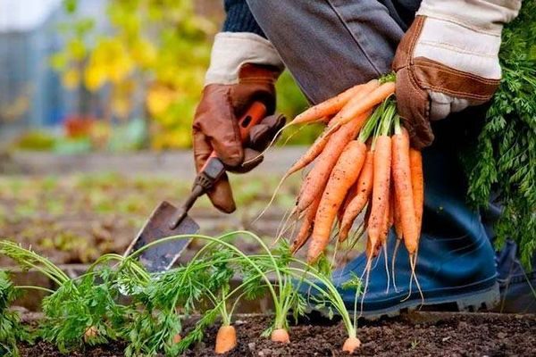 - 토양의 부드러움, 구성, 그리고 구조에 주의하세요. 토양이 헐거우면 당근을 한 번에 두 개씩 뽑아내세요. 뿌리를 서로 부딪히지 않도록 주의하세요. 수확 후에는 햇볕에 말리세요. 마른 모래는 보호 장갑을 착용하고 손으로 제거하세요.