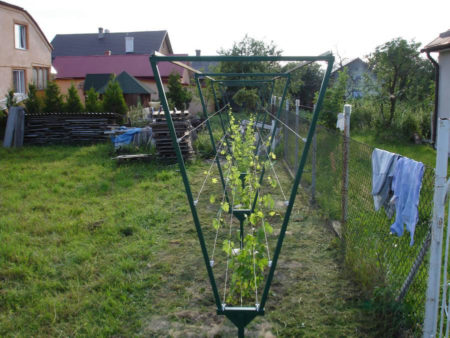 - 단일 평면 지지대에 설치하는 가터는 가지가 많고 키가 큰 품종에는 전혀 적합하지 않습니다.