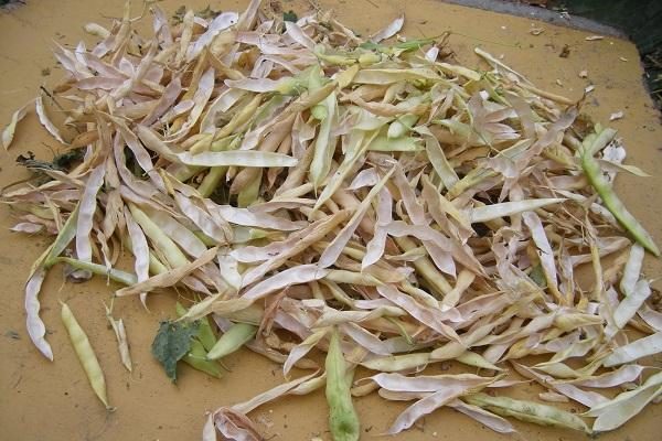 식물의 싹을 베어내고, 익은 콩에서 꼬투리를 분리합니다. 콩은 요리용으로 보관하고, 껍질은 직사광선을 피해 통풍이 잘 되는 곳에서 말립니다. 건조기를 사용할 수도 있습니다. 건조 온도는 섭씨 50~60도로 설정합니다.
