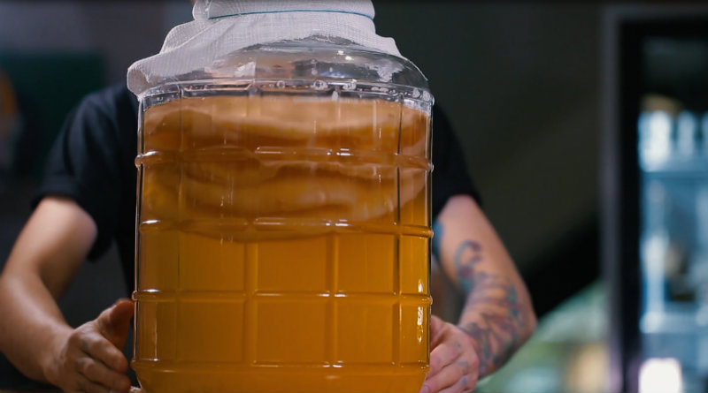 효모와 설탕은 발효 과정을 거쳐 에탄올과 이산화탄소를 생성합니다. 아세토박터균은 메틸카르비놀을 에탄산으로 산화시킵니다. 이로 인해 액체에 기포가 형성되어 달콤하고 신맛이 납니다. 중생균의 하부에서 일어나는 다양한 과정을 통해 글루콘산, 젖산, 아세트산, 사과산, 다양한 효소, 그리고 비타민 C와 PP가 생성됩니다.
